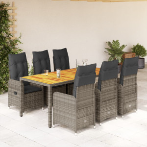 Set de mesa y sillas de jardín 11 pzs y cojines ratán PE marrón