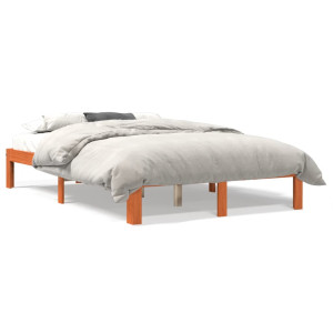 Estructura de cama madera maciza pino marrón cera 140x200 cm