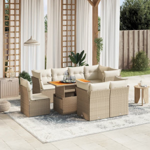 Juego de sofás jardín con cojines beige 10 pzas ratán sintético