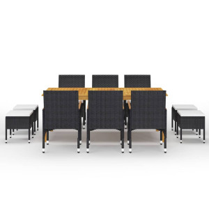 Juego de comedor de jardín de 11 piezas negro