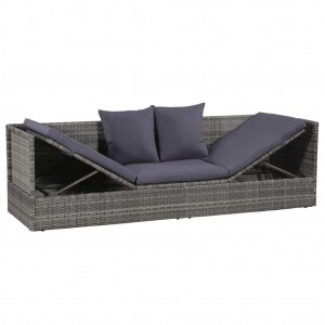 Cama de jardín 200x60 cm ratán sintético gris