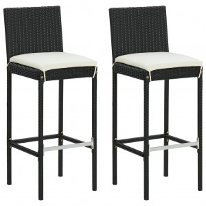 Taburetes altos de jardín cojines 2 uds ratán sintético negro