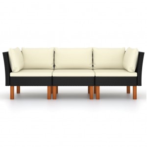 Sofá de jardín 3 plazas con cojines ratán sintético negro