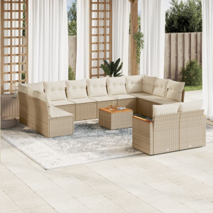 9 pcs conjunto de sofás p/ jardim com almofadões vime PE bege