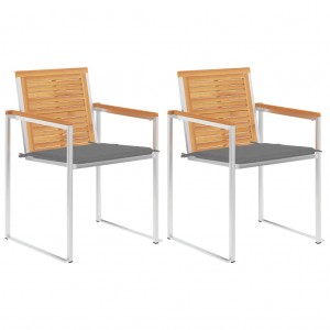 Cadeiras de jardim c/ almofadões antracite 2 pcs teca maciça