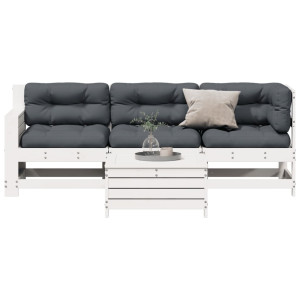 Conjunto de móveis de jardim de 4 peças com almofadas em madeira maciça de pinho branco