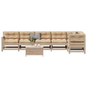 Conjunto de móveis de jardim 7 peças e almofadas em madeira maciça de pinho
