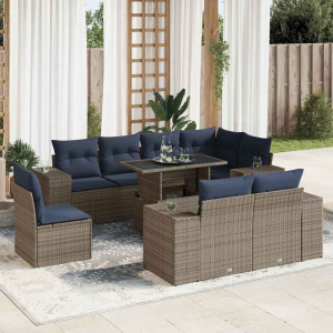 14 pcs conjunto sofás p/ jardim c/ almofadões vime PE cinzento