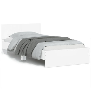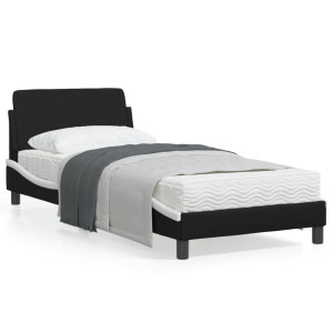 Estrutura cama c/ cabeceira couro artificial preto e branco