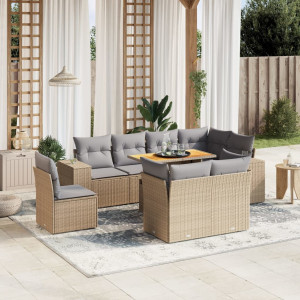 11 pcs conjunto sofás de jardim c/ almofadões vime PE bege