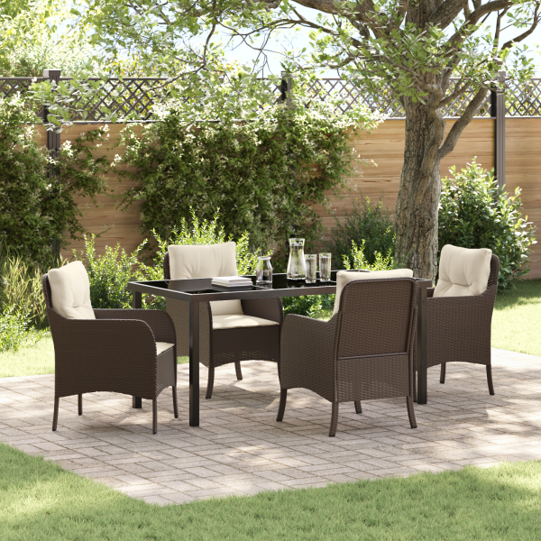 Conjunto de Jantar de Jardim de 5 Peças com Almofadas Castanhas de Vime PE