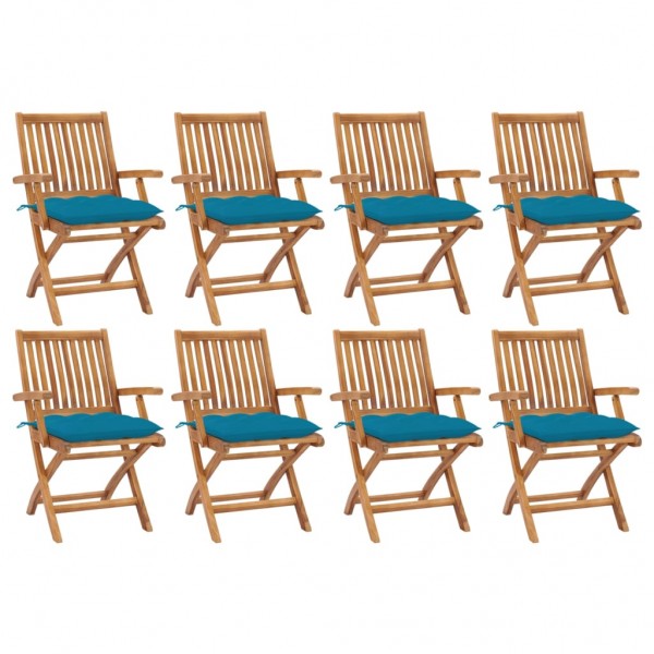 Cadeiras de jardim dobráveis c/ almofadões 8 pcs teca maciça