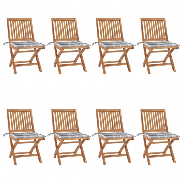 Cadeiras de jardim dobráveis c/ almofadões 8 pcs teca maciça