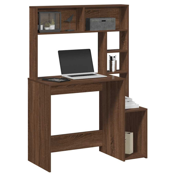 Secretária com prateleiras contraplacado carvalho castanho 100x45x140cm