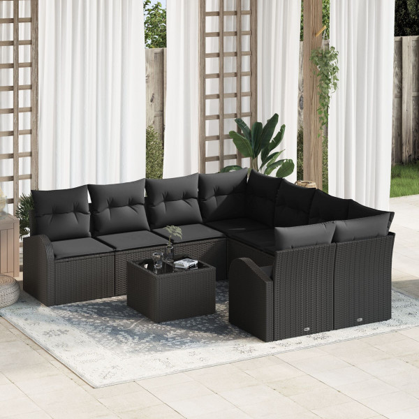 Conjunto de Sofá de Jardim 9 Peças com Almofadas Preto Polirattan