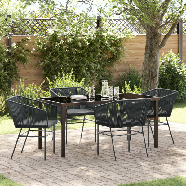 Conjunto de Jantar de Jardim com 5 Peças e Almofadas em Preto de Polirattan