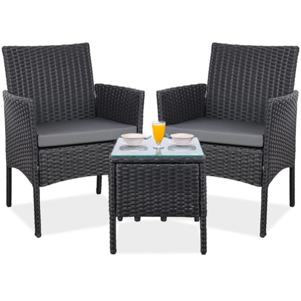 YOEVU SET DE JARDIN CONVERSACIONAL DE 2 ASIENTOS Y MESA COLOR GRIS ANTRACITA