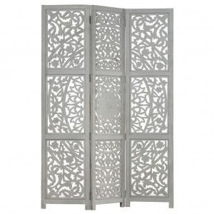 Biombo escul. mão 3 painéis 120x165cm mangueira maciça cinzento