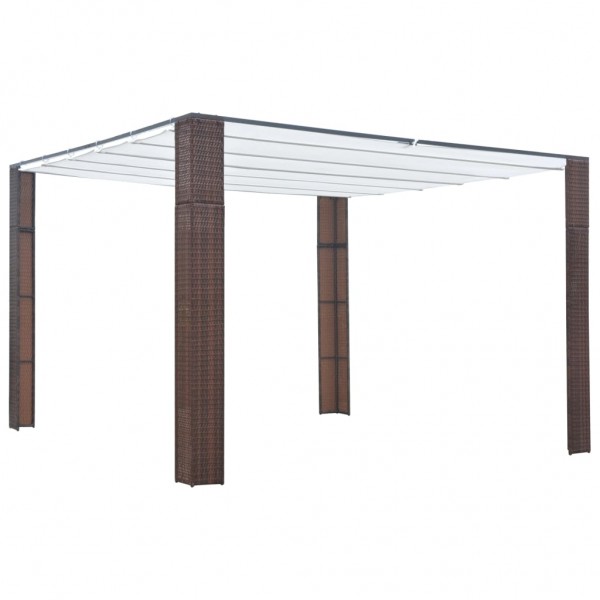 Gazebo com teto em vime PE 300x300x220 cm castanho e creme