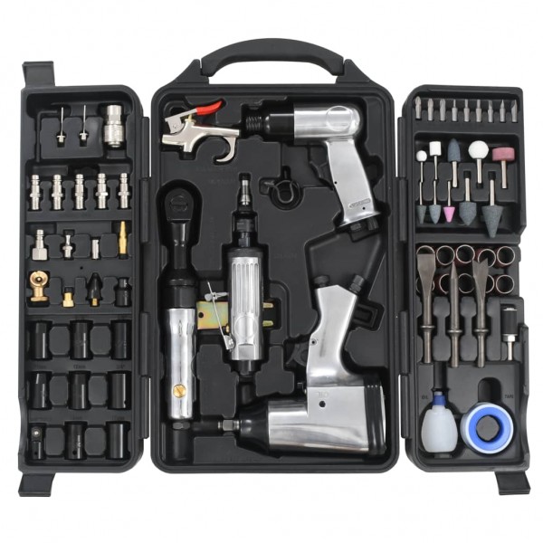 Todas as ferramentas pneumáticas estão armazenadas numa prática mala moldada a sopro