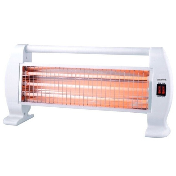 Estufa de cuarzo, 3 ajustes de temperatura, sistema de seguridad en caso de vuelco accidental. || 3 Posiciones de calor: 400W / 800W / 1200W.| Desconexión automática en caso de vuelco. | Asa de transporte.| Resistente a altas temperaturas.| Cuerpo de plástico y acero.| Tamaño: 490x115x255 mm.| Peso: 1.1 Kg.