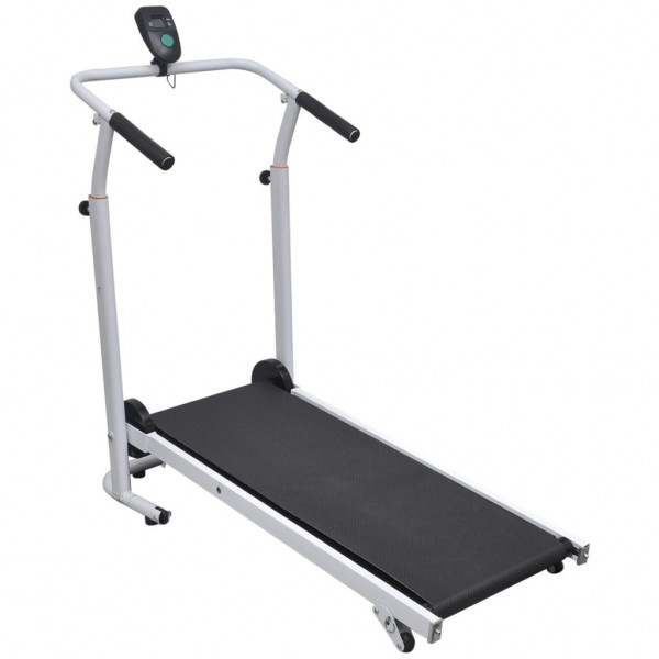 Esta passadeira manual irá permitir-lhe treinar em casa sempre que quiser. A passadeira possui uma superfície de corrida de 93 x 36 cm. Ao andar para a frente, faz com que o tapete se mova. Quanto mais rápido andar, mais rápido o tapete se moverá. A sua superfície antiderrapante é confortável e poderá caminhar em segurança. Ao mesmo tempo, o monitor incluído regista a sua velocidade, tempo de treino, distância percorrida e calorias queimadas. Graças ao seu design dobrável, a passadeira não ocupa muito espaço quando está guardada. Para além disso, os pés podem ser ajustados em altura para modificar o ângulo do tapete de corrida. Treine e fique em forma em casa com esta passadeira dobrável compacta e flexível! Observe que este produto é uma passadeira pequena e não elétrica, sendo mais adequada para uma caminhada, uma corrida de baixa velocidade ou jogging. Para utilizadores mais altos/maiores ou mais competitivos, é aconselhada a compra de uma passadeira maior e elétrica. Ler menos
