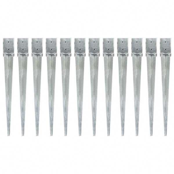Estacas de enterrar 12 pcs 10x10x91 cm aço galvanizado prateado