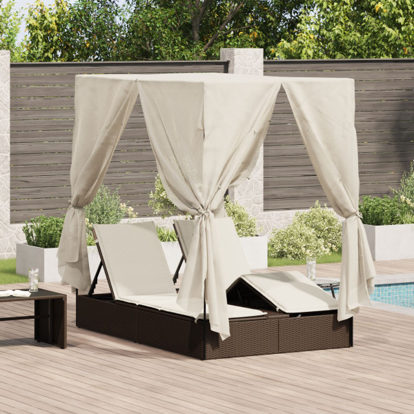 Espreguiçadeira Dupla com Telhado e Cortinas Castanho