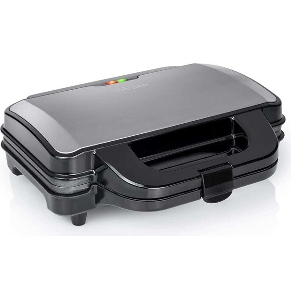 La sandwichera Tristar tiene un tamaño compacto, por lo que ocupa poco espacio para guardarla. La tapa tiene un cierre de seguridad y un compartimento para cable que le permite guardar la sandwichera tanto horizontal como verticalmente. Tiene un diseño elegante, gracias a la tapa de acero inoxidable, y podrá limpiarla con facilidad, gracias al recubrimiento antiadherente que garantiza que no se pega nada a las placas.
