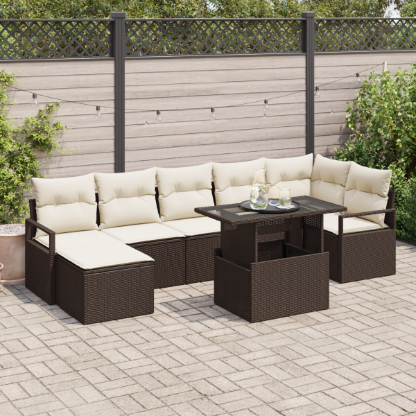 Conjunto de Sofás de Jardim com 8 Peças e Almofadas em Rattan Poliéster Castanho.
