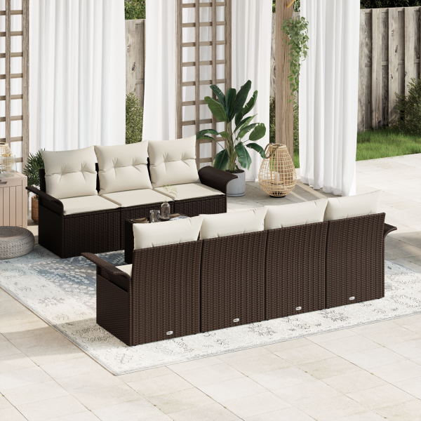 Sofá de Jardim 8 Peças com Almofadas Marrom em Rattan Sintético