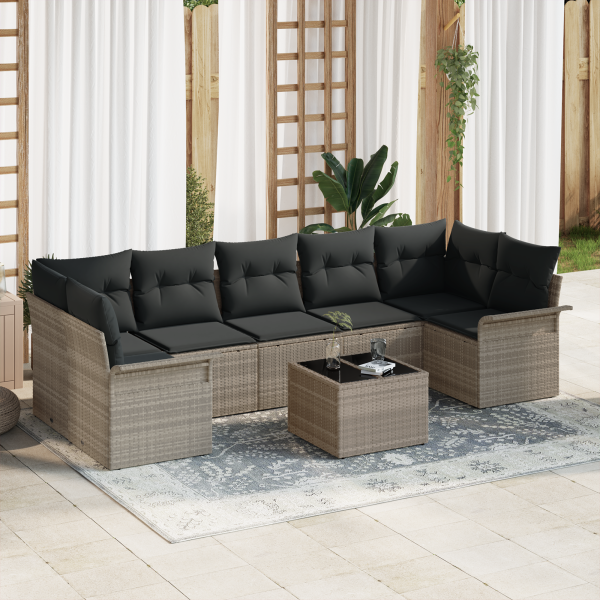 Sofá de Jardim com 8 Peças e Almofadas Cinza Claro em Rattan Sintético