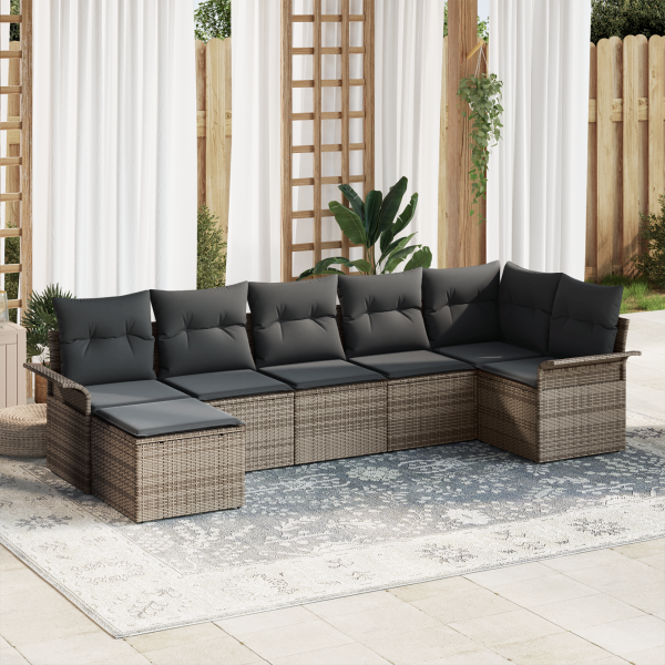 Conjunto de Sofá de Jardim 7 peças com Almofadas Cinza Rattan Poliéster