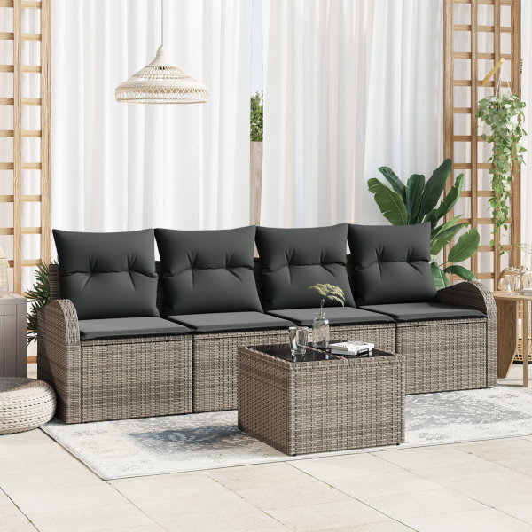Conjunto de Sofá de Jardim de 5 Peças com Almofadas em Polirattan Cinza