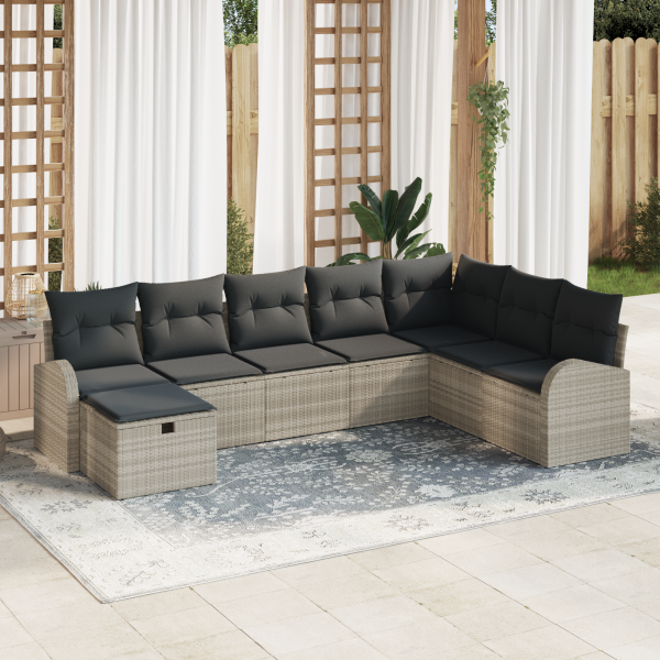 Conjunto de Sofá de Jardim 8 Peças com Almofadas Vime Cinza Claro