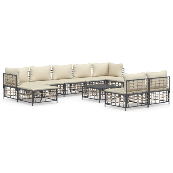 10pcs conjunto lounge de jardim c/ almofadões vime PE antracite