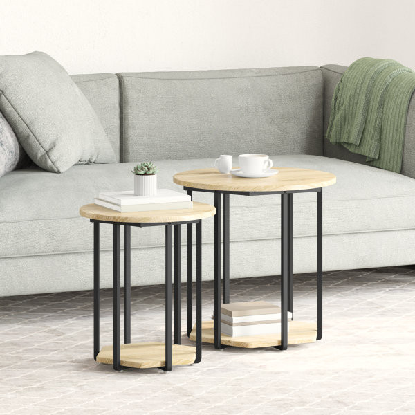 Conjunto de 2 Mesas de Apoio em Carvalho Sonoma. Madeira de Engenharia e Metal