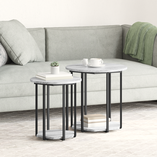 Conjunto de Mesas Laterais 2 pcs em Cinza Sonoma. Madeira Revestida e Metal
