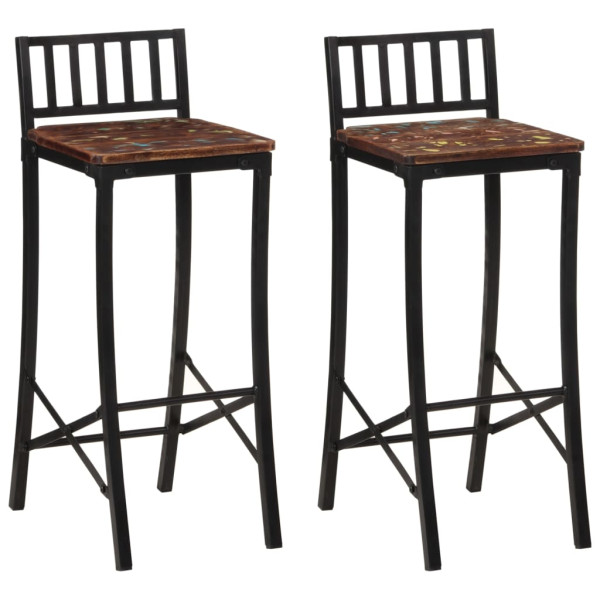 Estas rústicas cadeiras de bar em madeira são excelentes complementos para a decoração da sua divisão! Material durável: a madeira recuperada maciça consiste na reutilização de madeiras tais como teca, madeira de mangueira, pinho e faia. Estas madeiras são recicladas de edifícios antigos, tais como fábricas, abrigos e barcos. Como cada peça é fabricada à mão, as cores irão variar para cada produto.Design prático: estes bancos de bar para pequeno-almoço possuem apoios para os pés, que contribuem para um conforto adicional, permitindo que se sentem confortavelmente nos bancos.Amplas aplicações: estes bancos de bar multifuncionais possuem um formato perfeito para se adaptarem a qualquer ambiente da sua casa. Podem ser utilizados na sua cozinha, sala de jantar, sala de estar, etc. Dica útil:A cor e os grãos variam de peça para peça, tornando cada uma única. A entrega é aleatória, assegurando a exclusividade e a individualidade do seu produto. Máximo de 110 kg por lugar. Ler menos